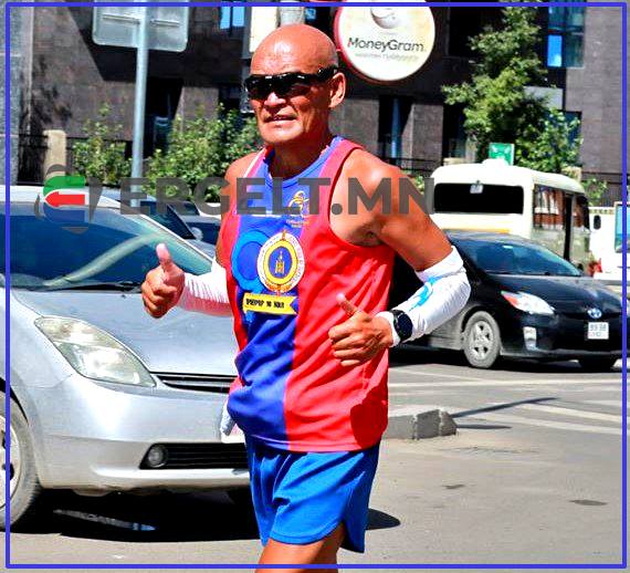 -Ах нь одоо нас сүүдэр 55-тай. Өнгөрсөн жил 54 насандаа Монгол Улсад Прокурорын байгууллага үүссэний 90 жилийн ойд зориулж 1040 километр гүйсэн юм. Энэ жил Говь-Алтай аймгийн Алтай хотоос Завхан, Архангай, Өвөрхангайгаар дайраад 1300 километр гүйхээр шийдсэн. Одоогоор айхтар ядарч, зүдэрсэн зүйл алга. Хөөгдөж, туугдсан амьтан шиг гүйхгүй шүү дээ. Өглөөний 9-12 цаг, үдээс хойш 16-19 цаг хүртэл гүйнэ. Анх гарахдаа өдөрт 60 орчим километр гүйж байсан. Одоо Улаанбаатар орох дөхсөн болохоор өдөрт дунджаар 45 километр гаруй зам туулж байна. Энэ сарын 10-н гэхэд хот руу орохоор төлөвлөсөн.