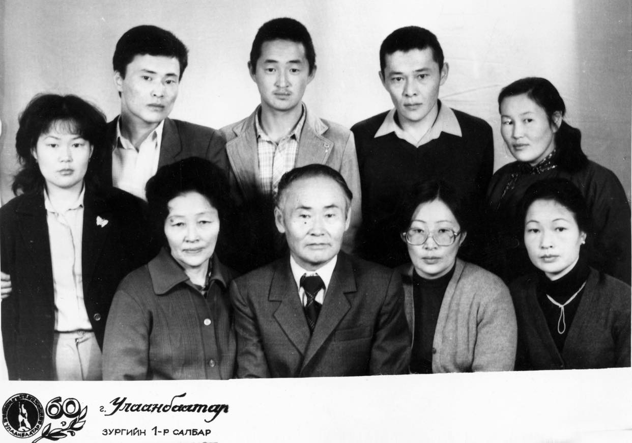 -1952 онд эмээтэй танилцсан гэдэг. Эмээ маань Монгол Зөвлөлтийн Найрамдлын нийгэмлэгийн номын санд ном олгогч байсан хэрэг. Танилцаж байсан үеийнхээ тухай тэмдэглэж үлдээсэн сайхан тэмдэглэлүүд бий. Мэдээж сайн яваа эр хүний ард арыг нь даадаг эмэгтэй хүн байдаг шүү дээ. Энэ л ёсоор эмээ минь долоон хүүхдээ төрүүлж, өсгөн хүмүүжүүлэх гээд арыг нь ёстой даасан шиг даасан байх. Эмээ маань 1993 оны намар бурхан болсон.