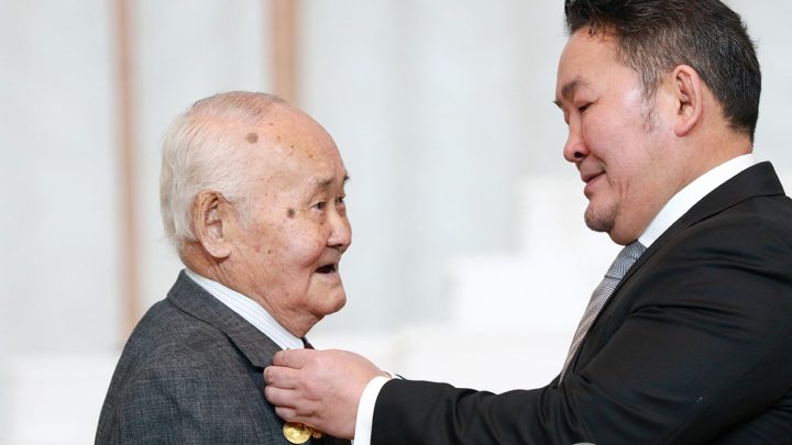 -Хөдөлмөрийн баатар цол хүртээх болсон тухай сонсоод хэсэг таг дуугүй болчихсон. Яах учраа олохгүй байгаа бололтой байснаа “Цаг хэд болж байна вэ” гэж асууж байгаа юм. “Ес өнгөрч байна” гэтэл “Хүүе, оройтох нь. Хоцорч болохгүй шүү дээ” гээд хувцсаа өмссөн. Ерөнхийлөгчийн Тамгын газраас бидэнд урд өдрийнх нь орой хэлсэн л дээ. Бид өвөөгийн бие чилээрхүү байсан болохоор шууд хэлж чадахгүй, шагнал гардуулахаас хоёр цагийн өмнө өөрт нь дуулгасан нь тэр юм. Баярлаж байгаа нь үг, үйлдэл бүхнээс нь мэдрэгдэж байсан. Их баярласан даа. Гэхдээ баатар хүн бол баатар л байдаг юм билээ. Би л “Өвөө юу боддог юм бол доо” гэж бодохдоо л өрөвддөг хэрэг. Түүнээс өвөө минь цоглог, цовоо хүн байсан шүү дээ.