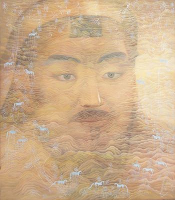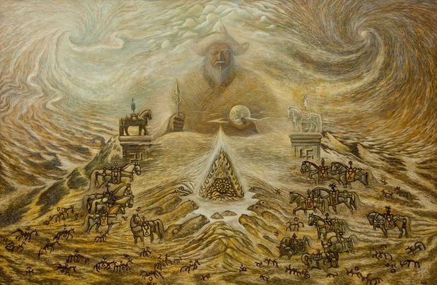 -Би 1995 онд “Мөнх тэнгэрийн эвийн чуулган” хэмээх Чингис хааны зураг зурсан. Тэр үед Ерөнхийлөгч асан Н.Энхбаяр Соёлын яамны сайд байсан юм. Тэгээд 1995 оныг соёлын жил болж, уралдаан зарлаж шилдэг бүтээлүүдийг шалгаруулав. Тэр үед урлаг судлаач Дашбалдан ах миний зургийг үзээд чиний зурганд “Мөнх тэнгэрийн эвийн чуулган” гэх нэр өгнө гэж нэр өгч байлаа. Тэгээд 1996 онд тухайн зургаараа Төрийн соёрхолт шагнал хүртсэн юм.