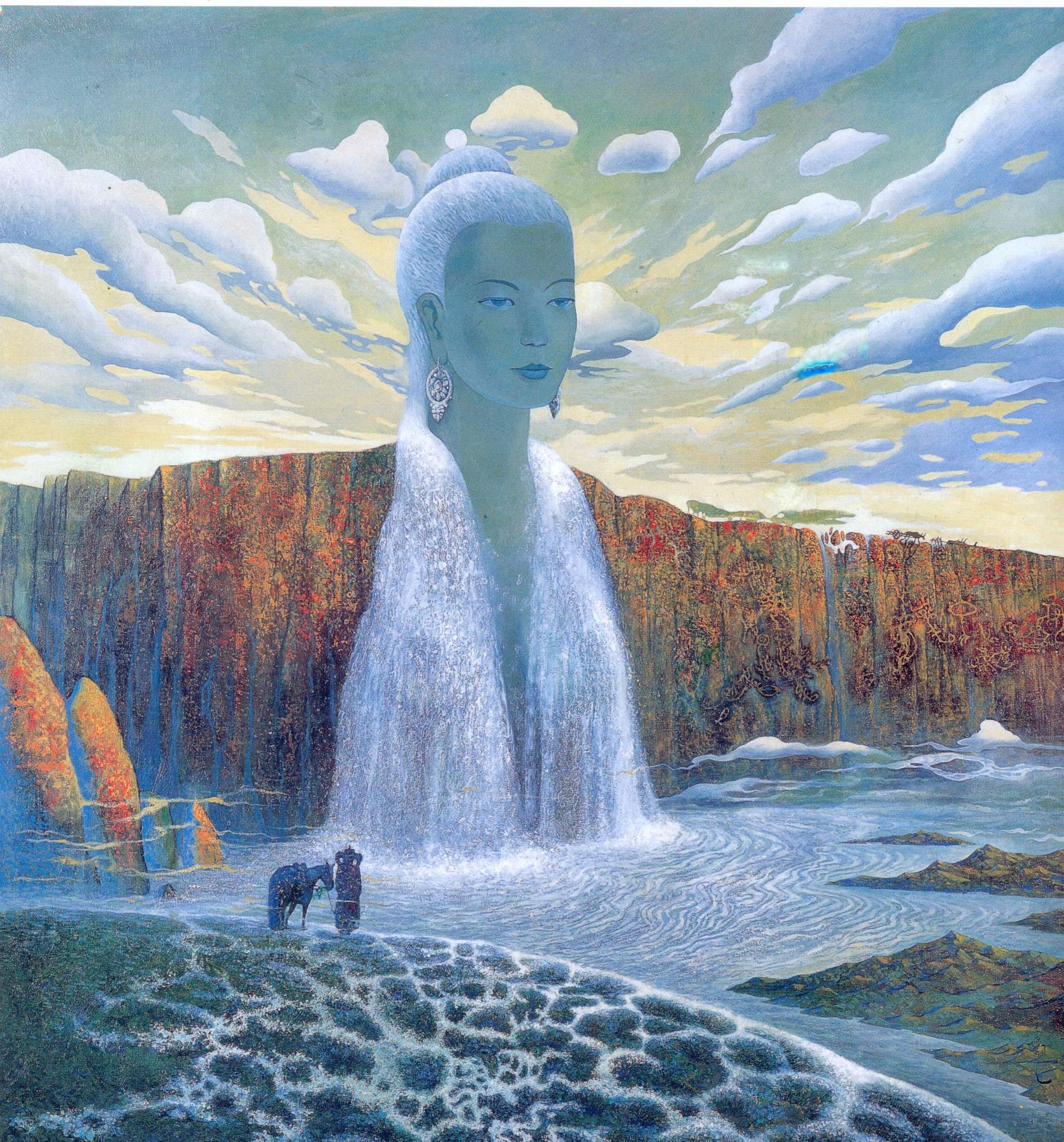Орхоны хүрхрээг хараад миний сэтгэл хөдөлж, түүний хоёр салаалж доошоо цутгаж байгаа нь эмэгтэй хүний хоёр хуваасан гэзэг шиг санагдаж, гэзэгнээс нь ус урсаж буй эмэгтэй хүн болгон зурж, “Орхон” хэмээх нэр өгч байсан юм. Түүнээс хойш байгальд дуртай болж Архангай аймгийн Чулуут голын хадны зургуудыг үзэж эхэлсэн. Хадны зураг гэдэг амьгүй зураг гэсэн үг. Гэхдээ надад амьтай зураг шиг санагддаг.