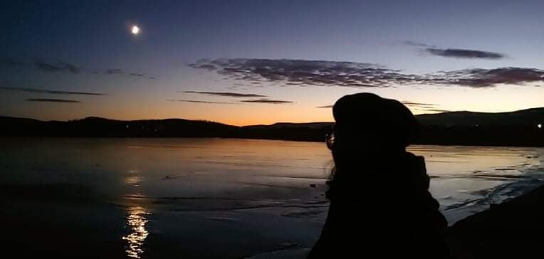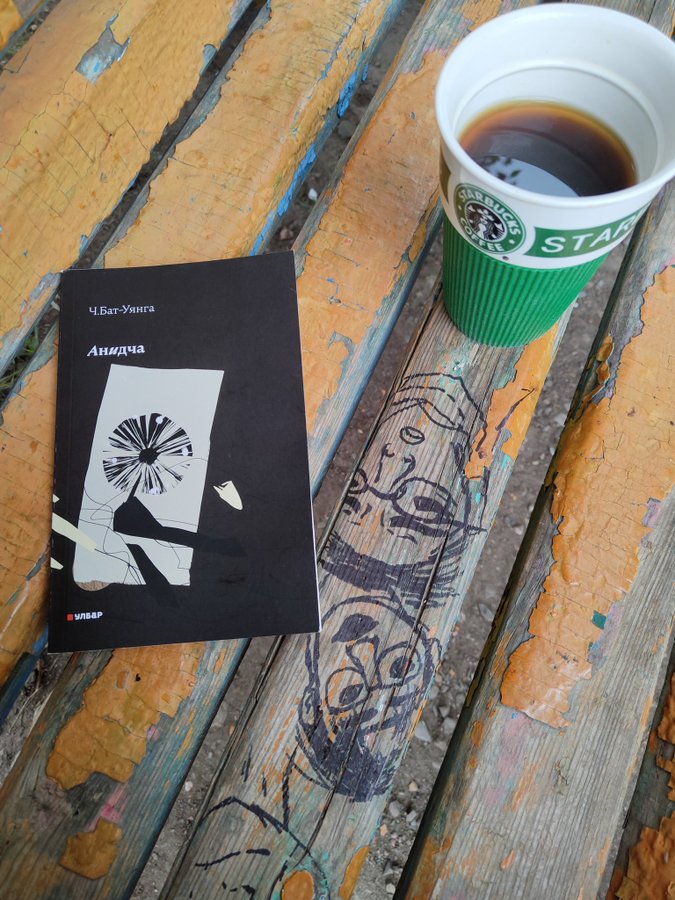 Хатгал тосгонд байх “Arya Cafe”-д яваад ортол нэг өнгийн нэлээд хэдэн ном ширээн дээрээ дэлгээд тавьчихсан зорьж очсон Ч.Бат-Уянга маань сууж байна. Өнгөрсөн намар л Улаанбаатараас гарсан дайвар ачаа нь ярилцагчид маань өдийд л ирж байгаа нь энэ. Сайн харвал яруу найрагч Б.Одгэрэлийн “Үл таних зочин” ном байх бөгөөд Улаанбаатараас 1000 км орчим зайтай Хатгалд тосгонд ирэхдээ бороо, шороо “үзэж” олон ном норж, дарагшжээ. Тэгээд л ярилцагч маань намайг иртэл норсон хэдэн номоо хатаахаар эгнүүлэн тавьсан нь тэр байж.