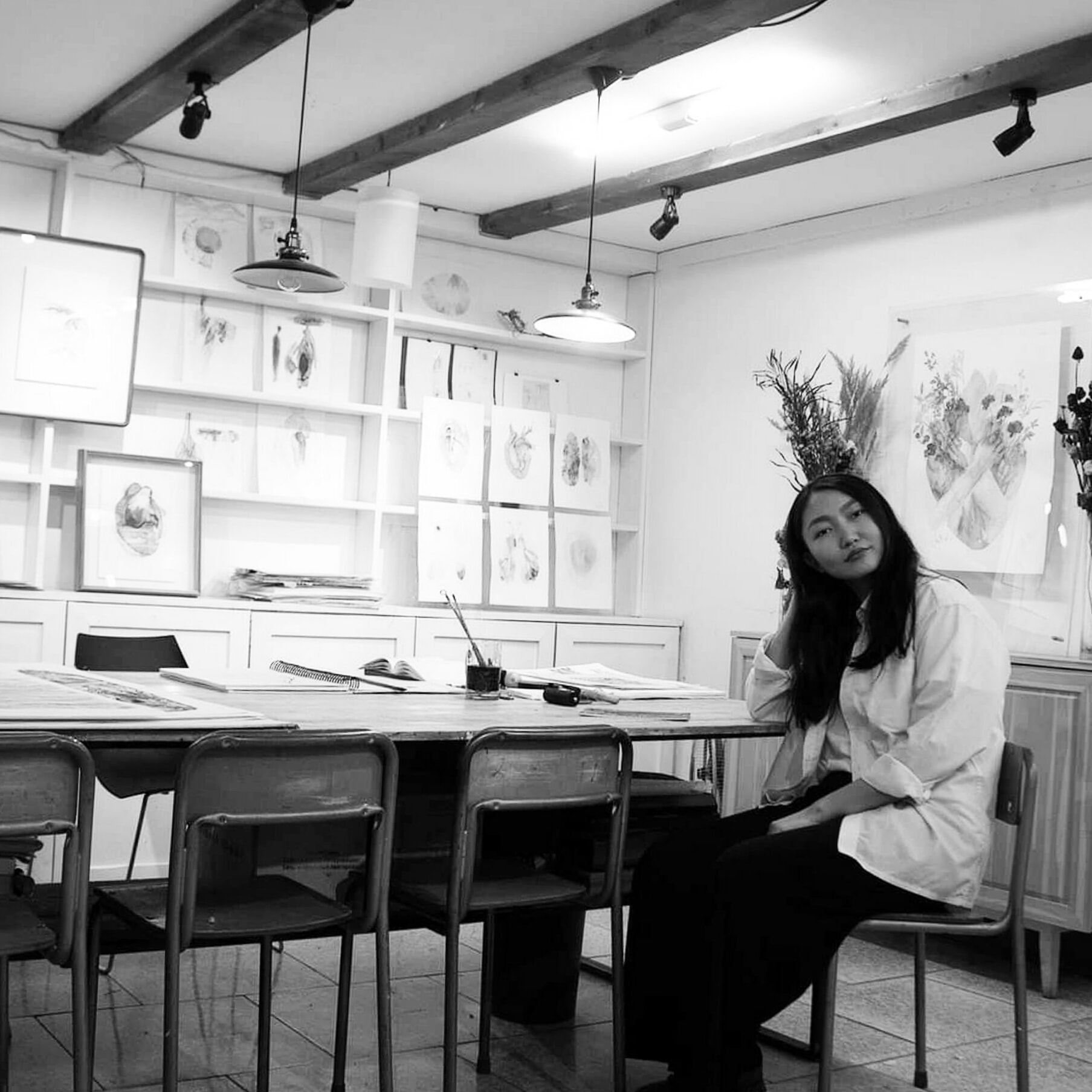 Өөрийн бүтээлдээ ихэвчлэн хөдөлгөөнд тээргүй сул хувцас өмсөөд, бүх материалаа цуглуулж авахад ойрхон бэлдээд, урлангаа цэвэрлэж, эмх цэгцтэй болгочихоод гарч орохооргүй үед бүтээлээ эхлүүлж, цагаа ч анзаарахгүй нам суудаг. Хааяа лаа асааж, байгалийн чимээ сонсож зурдаг. Нэг төвлөрөөд хийж байгаа үедээ сатаармааргүй байдаг учир утасныхаа дууг хаадаг.