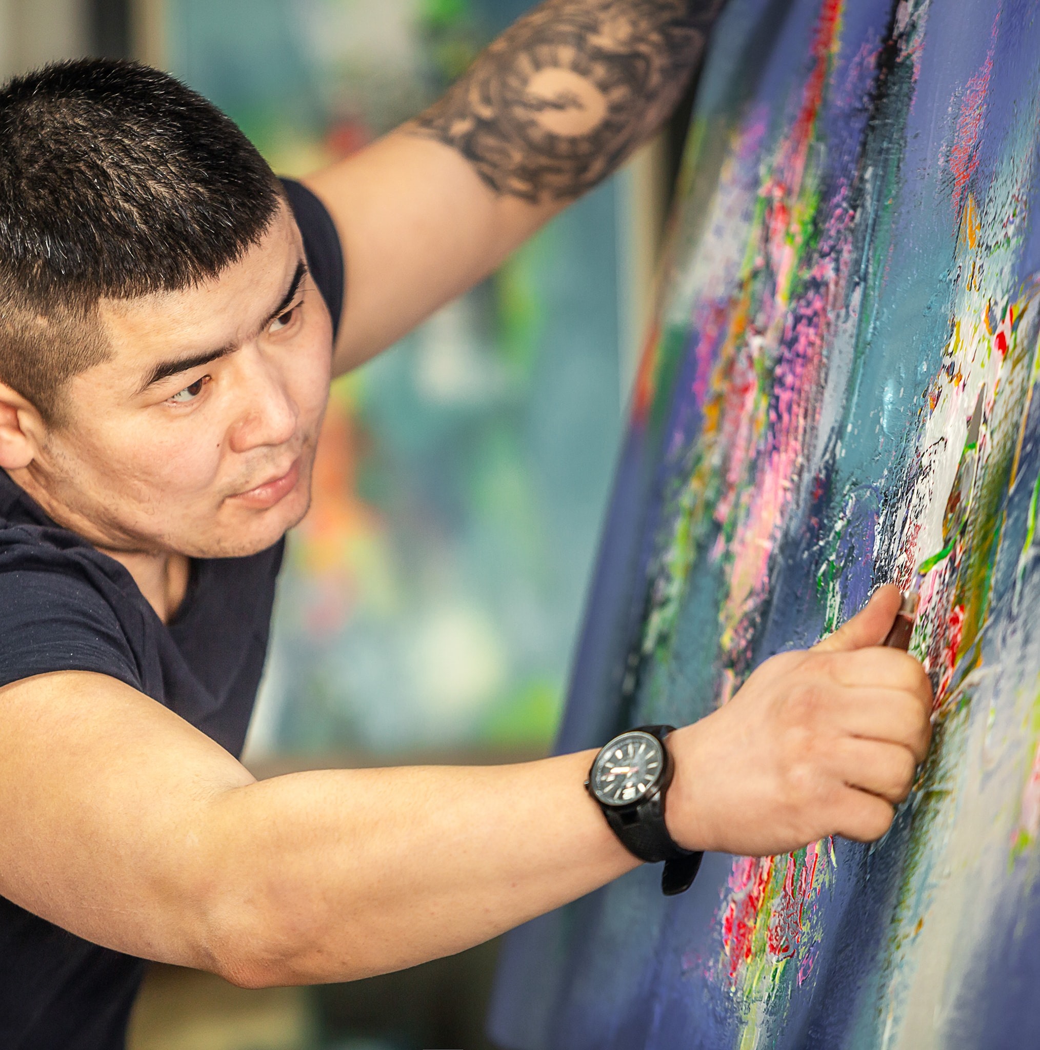 -Абстракт зураг бол маш гайхамшигтай, юунд ч баригдахгүй эмоциороо хийдэг сэтгэлгээний урлаг юм. Яаж олон өнгөний зохицол, уусал нэгдлийг харуулж болох вэ гэдгийг хайдаг, эрдэг, олдог. Хамгийн гайхамшигтай нь дахин хэзээ ч давтагддаггүй. Манайд энэ төрлийн урлагийг ойлгодог, үнэлдэг хүн маш олон байгаа шүү. Аливаа зургийг хуулж зурна гэж бодох ч хэрэггүй.