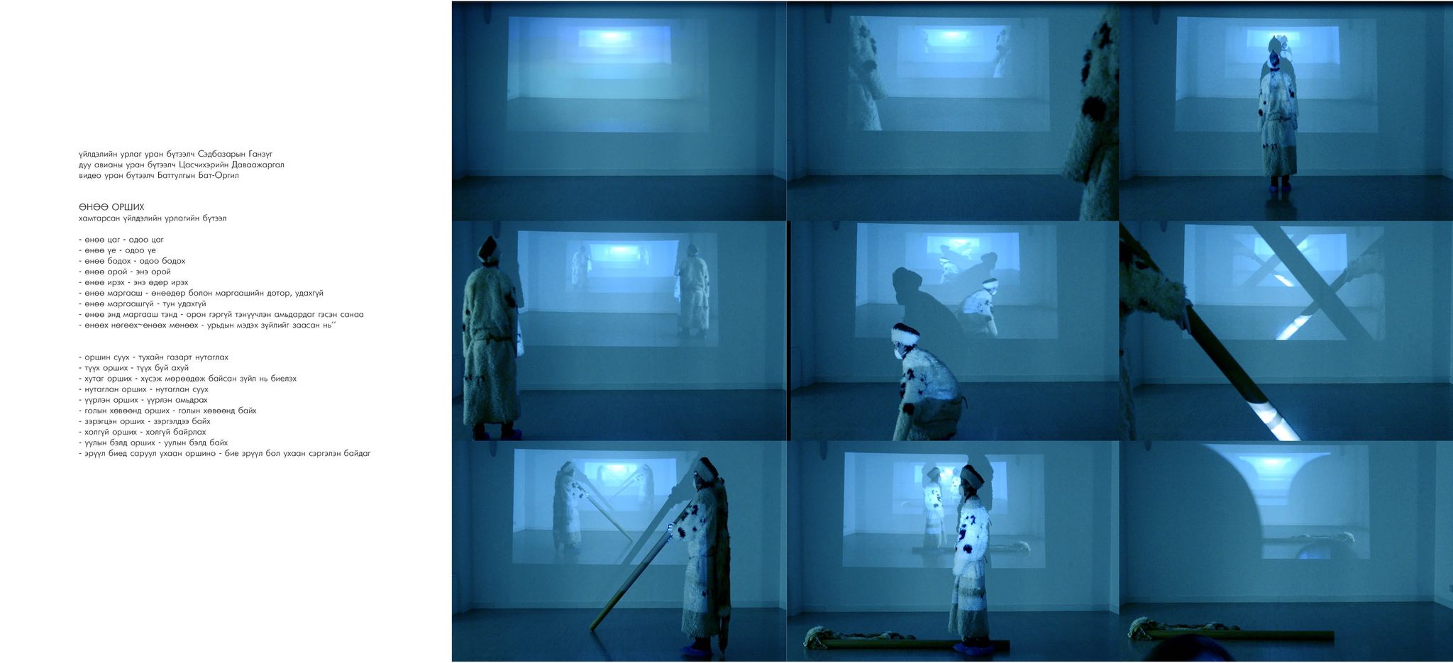 Бид анх хоёр жилийн өмнө зохиолч, яруу найрагч Ө.Үлэмжтөгсийн “Амьгүй биет” контемпорари жүжгийг бүтээлцэхэд нэг багт ажиллаж байлаа. Тэрбээр Нидерланд, Финланд, Герман, Хонконг, Тайвань, Солонгос, Итали зэрэг оронд өөрийн орчин үеийн урлагийн бүтээлүүдээ толилуулсан “том нэгэн”.