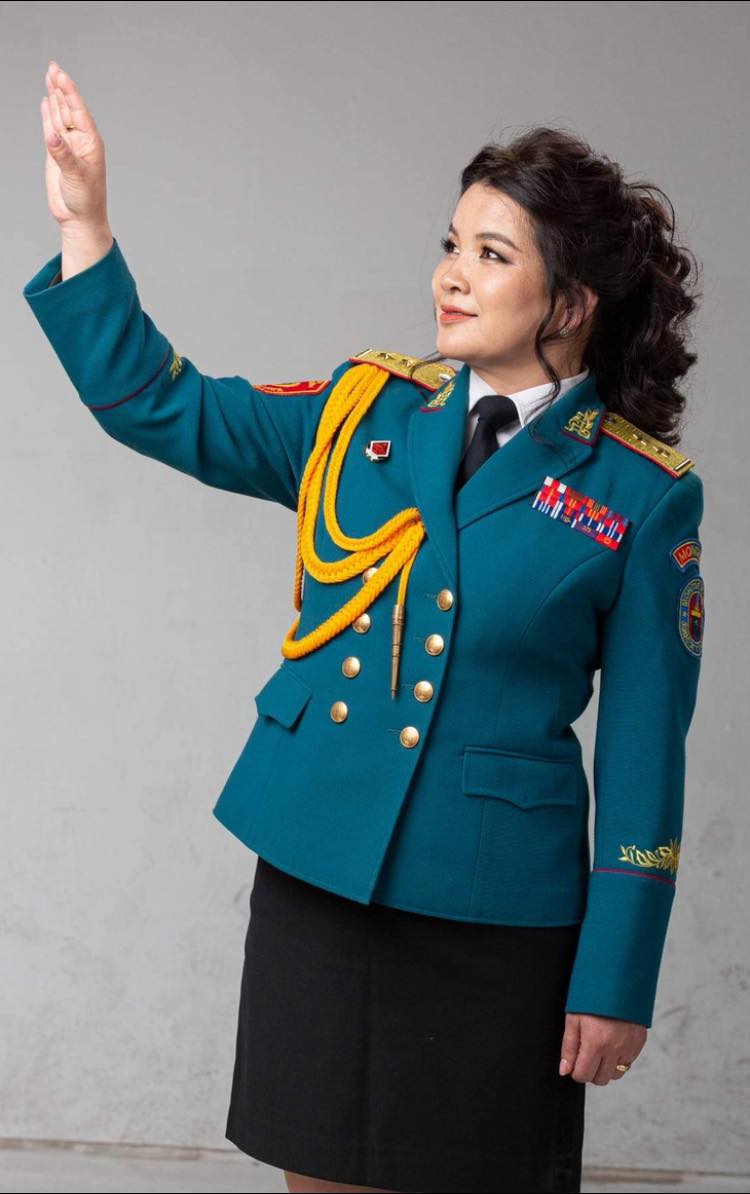 Утсаар холбогдож, яриа авах хүсэлтэйгээ хэлэхэд тун эелдэг дотноор Цэргийн дуу бүжгийн эрдмийн чуулгын өрөөндөө урьсан юм. Зэвсэгт хүчний хамгийн чухал албыг авьяас, хөдөлмөрөөрөө хариуцан авч, гялалзтал хашдаг энэ галтай эмэгтэй биднийг очиход, тун чиг завгүй нөр их ажлаасаа амсхийн суулаа.