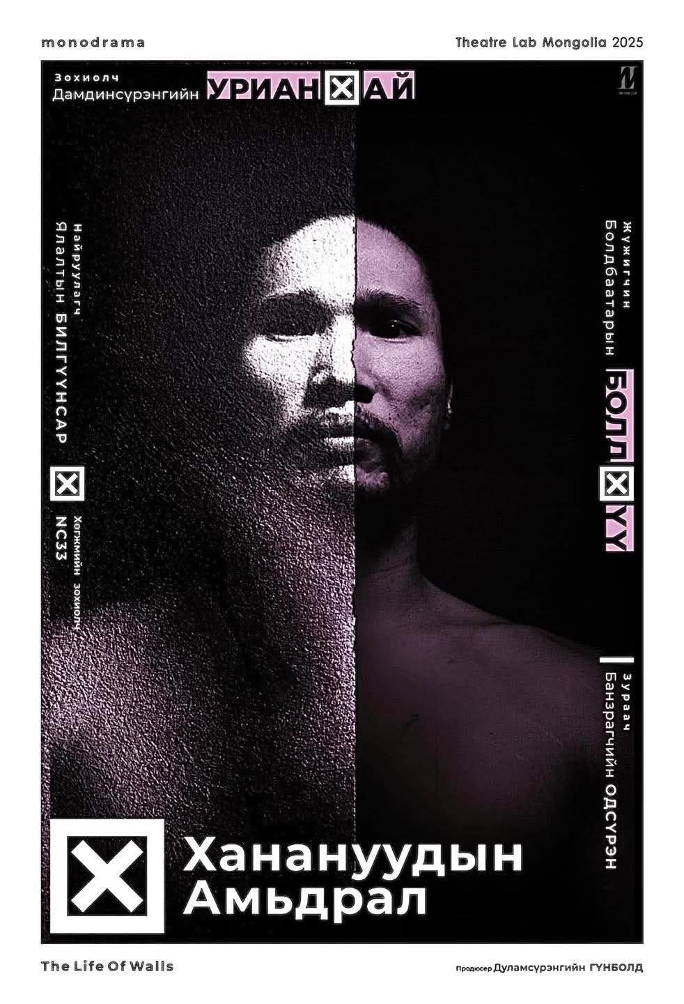 -Японы алдарт найруулагч Акира Куросавагийн “Долоон самурай” гэж гайхалтай уран бүтээл бий. Тэр зохиолоос жүжгийн зохиол гаргаад, найруулаад, Самурайгийн ахлахын дүрд нь тоглосон. Түүнээс өмнө СУИС-ийн залуу багш нар нийлж "Theatre Lab" продакшныг нээсэн. Одоо гурав дахь жил рүүгээ орж байна. Энэ хугацаанд бид Д.Урианхайн “Чингис” жүжигт ажиллаад, миний бие Чингисийн дүрд тоглож Румын болон Вьетнамын фестивалиудад оролцсон. Одоо мөн шинэ жүжигт ажиллаж байна.