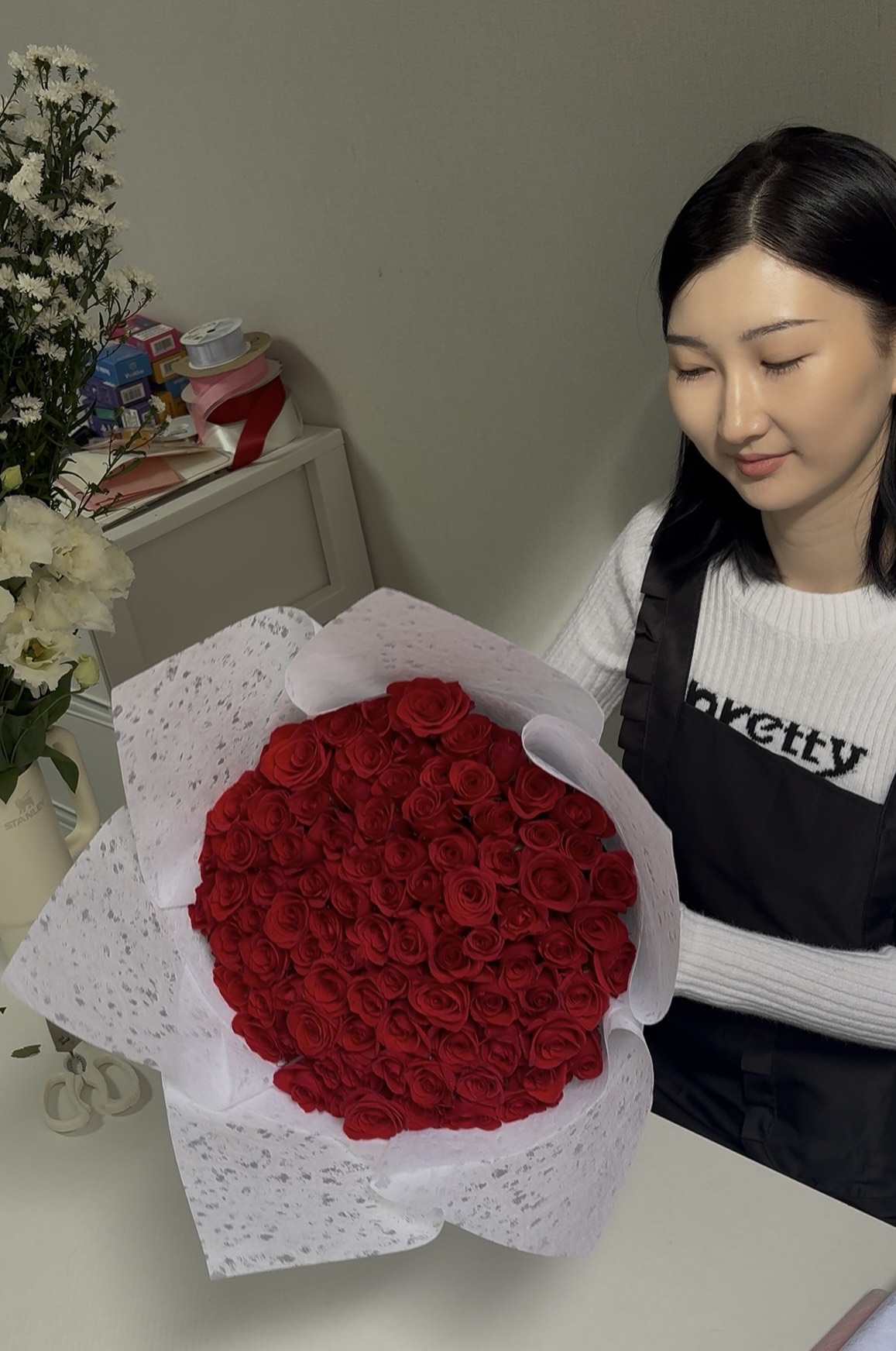 Би өмнө нь цэцгийн чиглэлээр ажиллаж байгаагүй ээ. Ямар нэгэн бодит туршлага байхгүй. Харин цэцгийн дэлгүүрээ нээхээсээ өмнө Youtube-ээр цэцэг боох бичлэг үзэж, аргыг нь сурсан. Өөрөө цэцэгт дуртай, гарын ур дүйтэй болохоор хурдан сурчихсан.