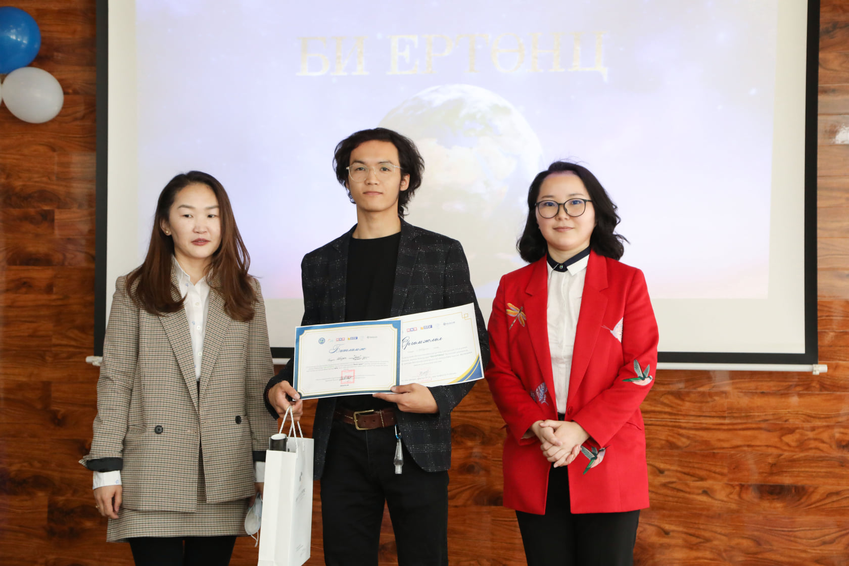 -Шалгарсан бүтээлийг хийсэн оюутнуудад шагнал гардуулахын өмнөх өдөр ОТИС-аас надтай утсаар холбогдсон. Тэгээд “Маргааш, өөрийн биеэр ирээрэй” гэсэн. Тухайн үедээ яг баттай хариу өгөөгүй. Ямартай ч ирээрэй гэсэн болохоор тусгай байрт шалгарсан юм болов уу гэж бодож байсан. Өмнө нь ямар нэгэн байр эзэлсэн гэх мэдээлэл огт байгаагүй. Шалгарсан эсэхээ мэдэхгүй яваад очсон л доо. Очоод л гэрэл зургийн төрөлд шилдэг бүтээлээр шалгарсан гэдгээ мэдсэн. Өөр оролцсон төрлүүд нь байр эзлээгүй. Зөвхөн гэрэл зураг маань түрүүлчихсэн байсан. Тэгээд цаашдаа энэ чиглэлээ хөгжүүлбэл чадах юм байнадаа гэсэн урам авсан.