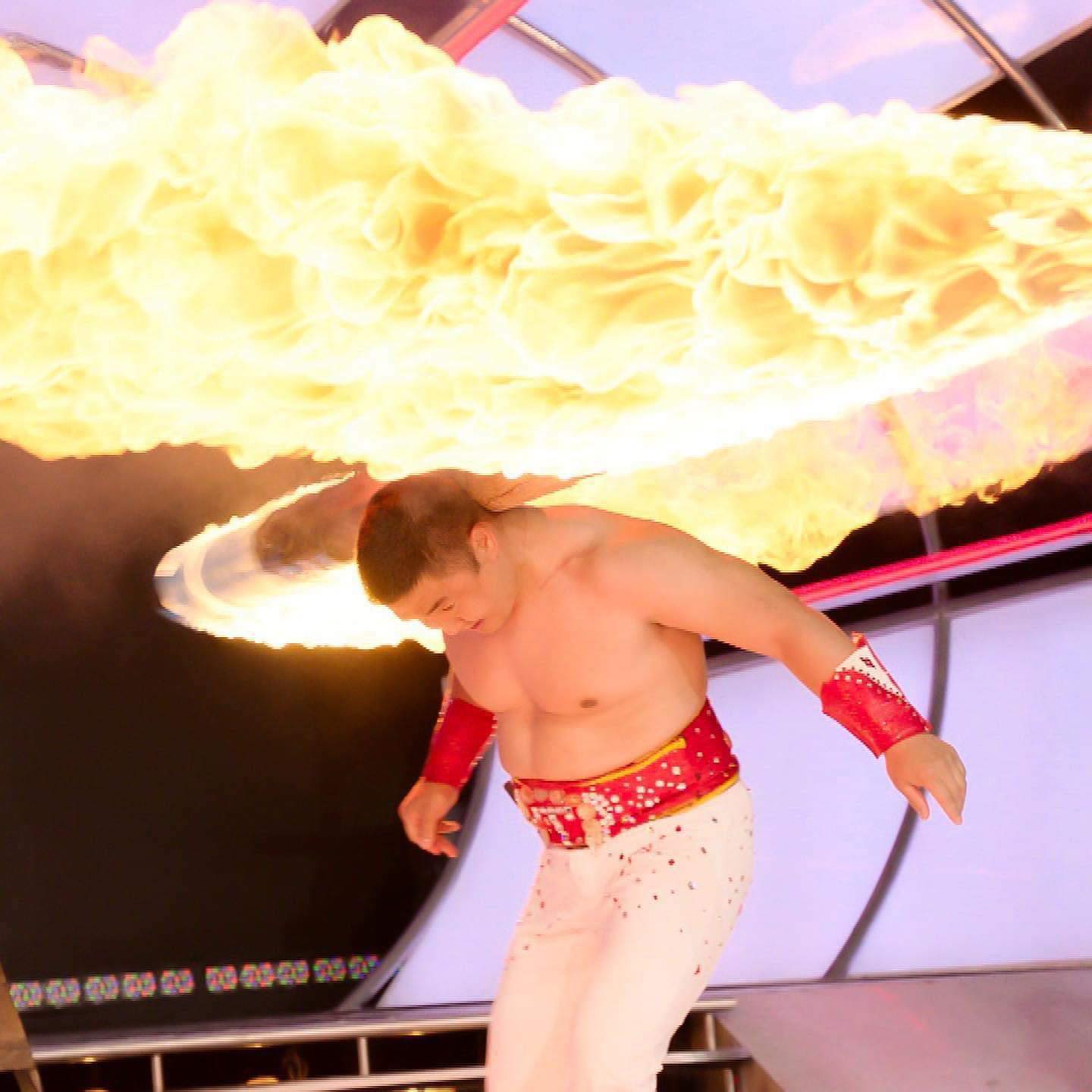 -Үзэгчид хүртэл өөдөөс халуу дүүгээд, хөлс гарчихлаа "Чи яаж тэр их галыг хүзүүн дээрээ эргүүлж чаддаг юм бэ" гэж гайхдаг. Гэхдээ би хүмүүс рүү төөнөж байгаа галаас илүү гал дунд үзүүлбэрээ үзүүлдэг гэсэн үг. Тийм болохоор миний хөлс их гардаг. Маш их эрсдэлтэй үзүүлбэр болохоор хүмүүсийг битгий дуурайгаасай гэж хүсэж байна.