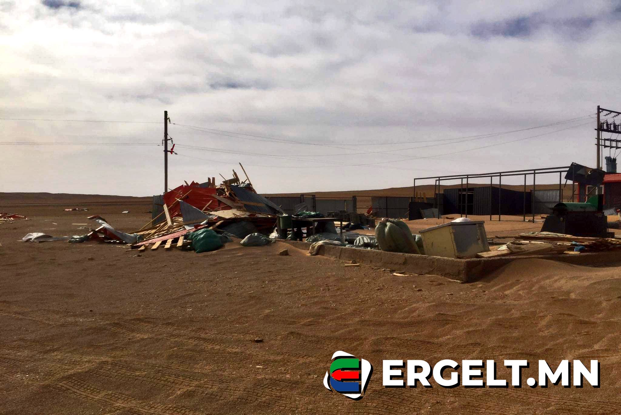 -Аймгийн удирдлага болон цаг уурын газраас мэдээлсэнээр Дундговь аймагт салхины хурд зарим үед 40 м/с хүрч, ширүүссэн. Ерөнхийдөө гуравдугаар сарын 14-ны 14:00 цагийн орчмоос эхлэн харанхуйлж, нар үзэхгүй байсаар байгаад өнөө өглөө нар үзлээ гэж нутгийн хүмүүс хэлж байна. Салхины хурд 18 м/с-ээс дээш ширүүсвэл гамшгийн хэмжээнд хүрлээ гэж үздэг. Манай нутагт үе үе салхи, шуурга болж л байдаг. Гэхдээ айлуудын гэр, хашаа, байшинг нураах салхи, шуурга болж байсангүй. Гэтэл өчигдөр 40 м/с хүрч, үнэхээр гамшиг боллоо. Би Мандалговь сумын төвөөс Өмнөговь явах замд 10км зайд эсгийний үйлдвэр болон хонь хурганы нэхий боловсруулах үйлдвэр ажиллуудаг юм. Нутгийнхаа 6 хүн цаашлаад 6 ам бүлийг ажлын байраар хангадаг. Гэтэл үйлдвэр маань шуурганд нурсан таагүй мэдээ дууллаа.