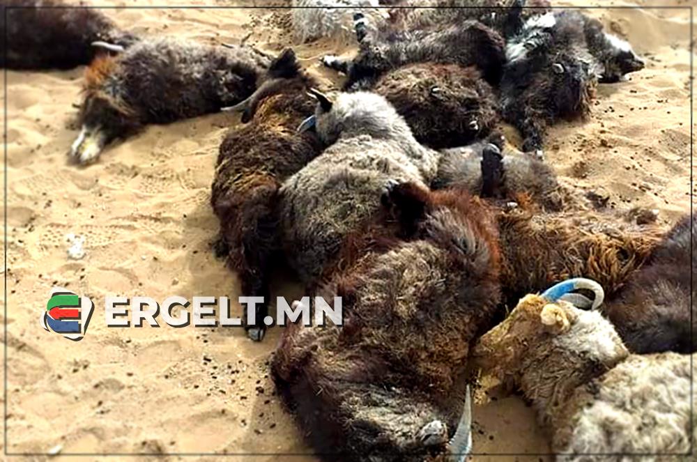 -Хоёр нүд битүү элс, шороогоор дүүрсэн байна лээ. Элс шороонд дарагдсан малыг татаж авахаар үс, арьс нь хөрстэйгөө хууларч байна. Шүдлэн ишиг юмуу, жижиг малуудын бөгс нь хунгарлагдсан элсэнд дарагдсан. Дөрвөн хөлөөс нь өргөж байгаад сэгсрэхээр хоёр килограмм сахар шиг их сонин элс гарч байна лээ.