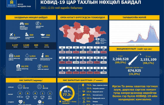 2021.11.22-нд Улаанбаатар хотод явуулын 23, суурин 52, түр 25 цэгт 102 багийн 436 эмч, ажилтан ажиллаж, 5818 иргэнийг дархлаажуулахаар төлө ...