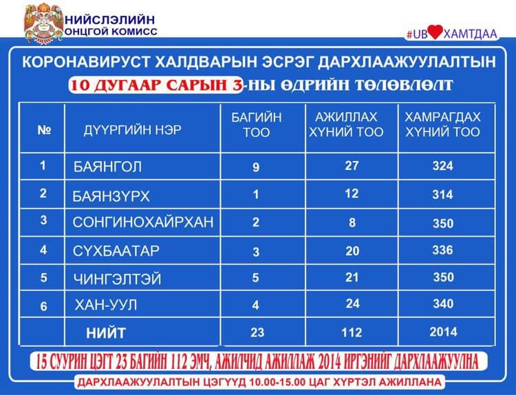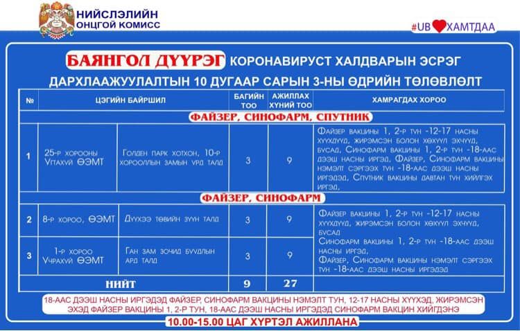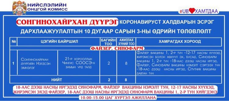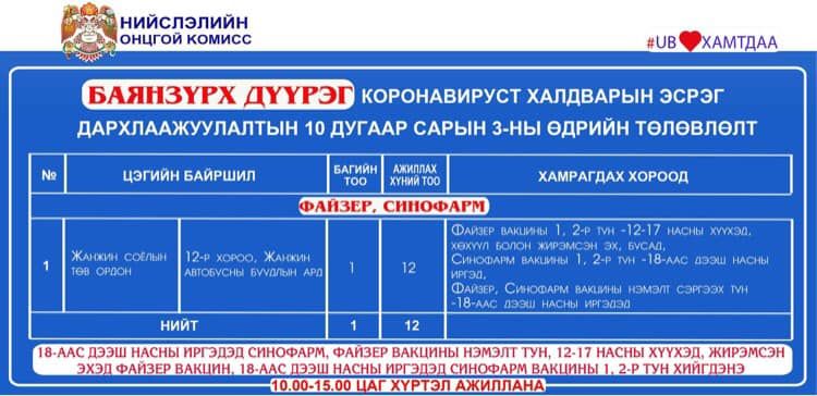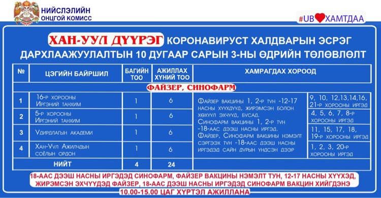Дархлаажуулалтын цэгүүд 10:00-15:00 цаг хүртэл ажиллана.