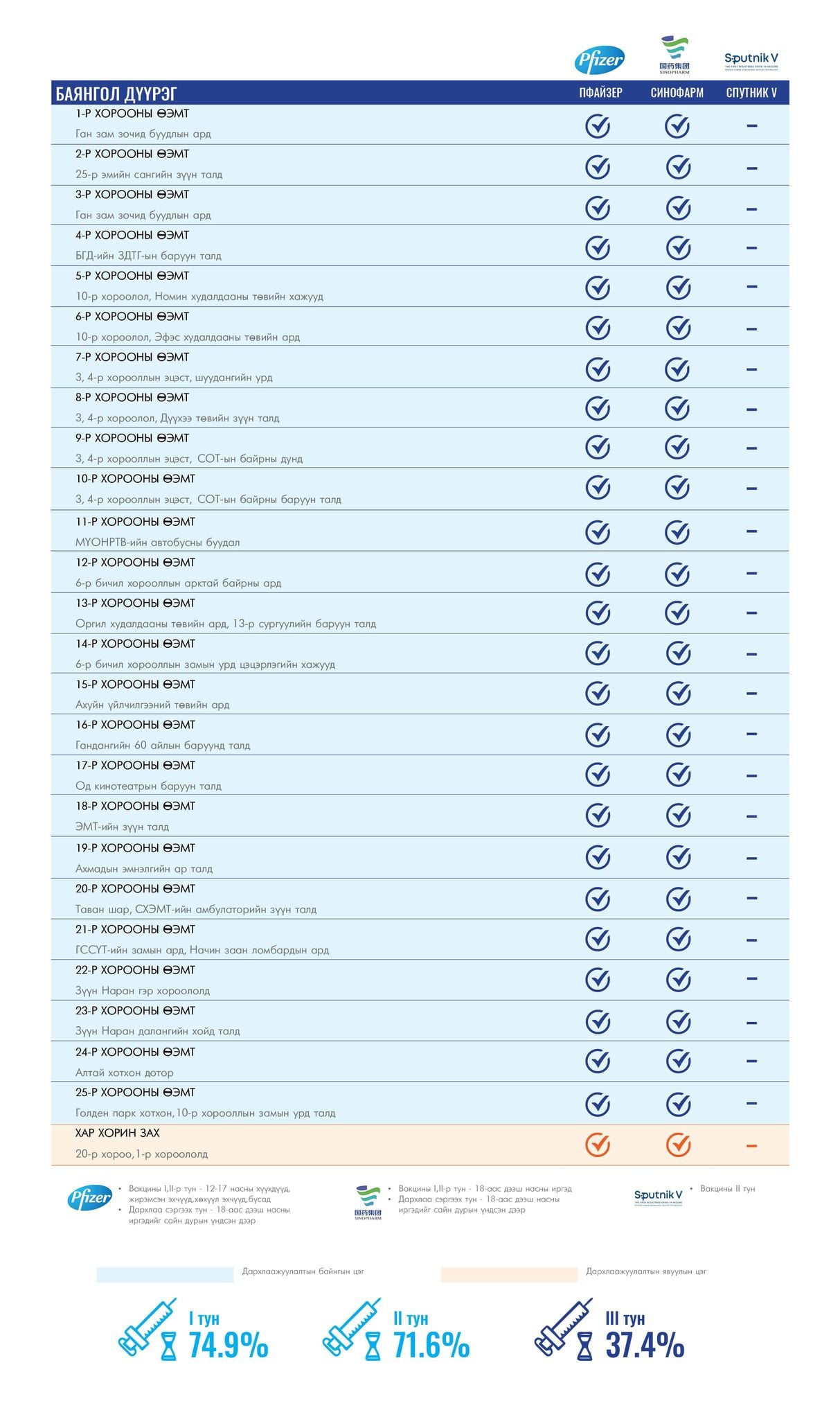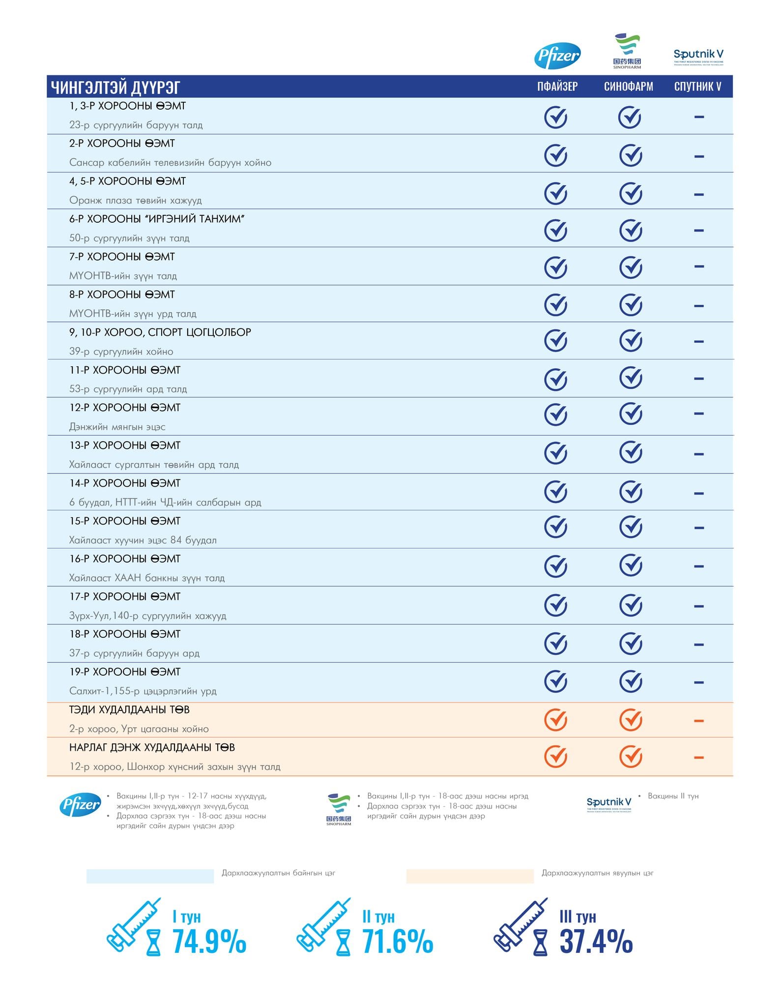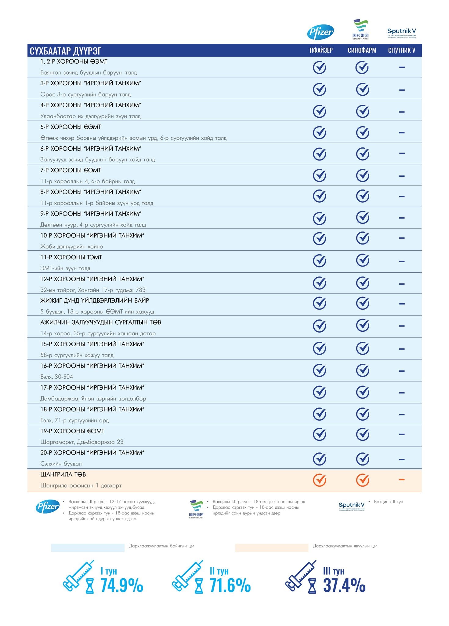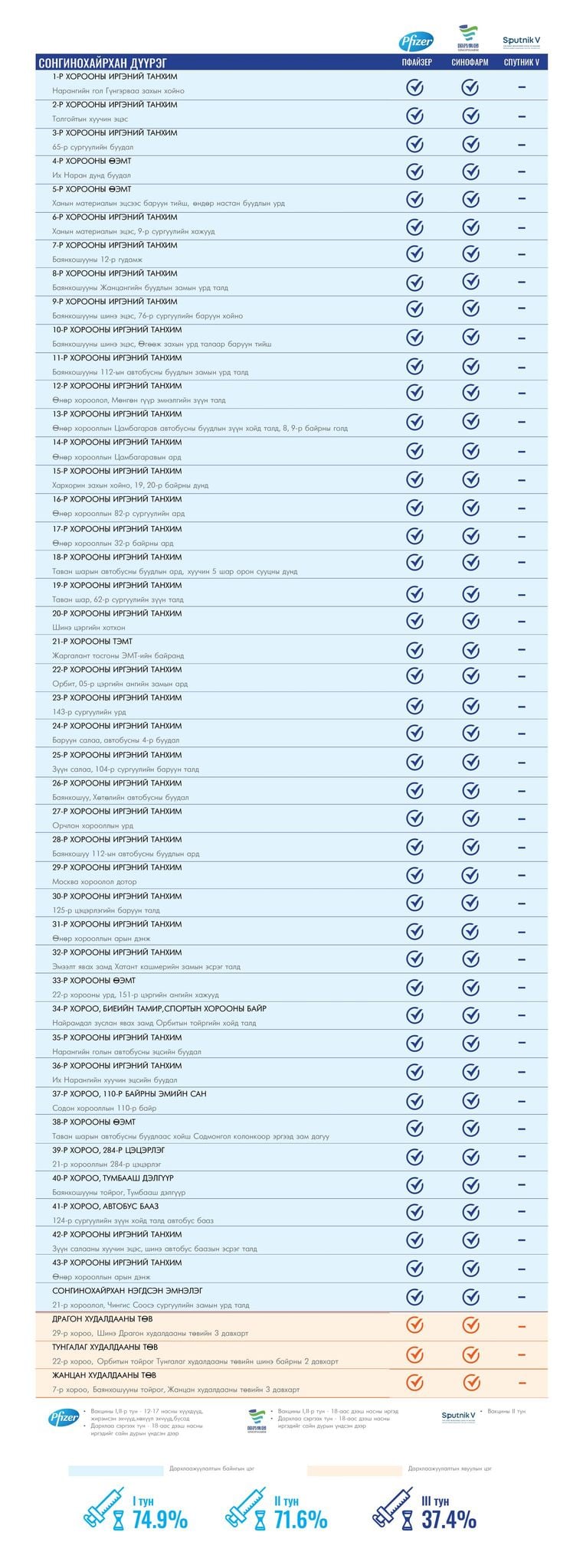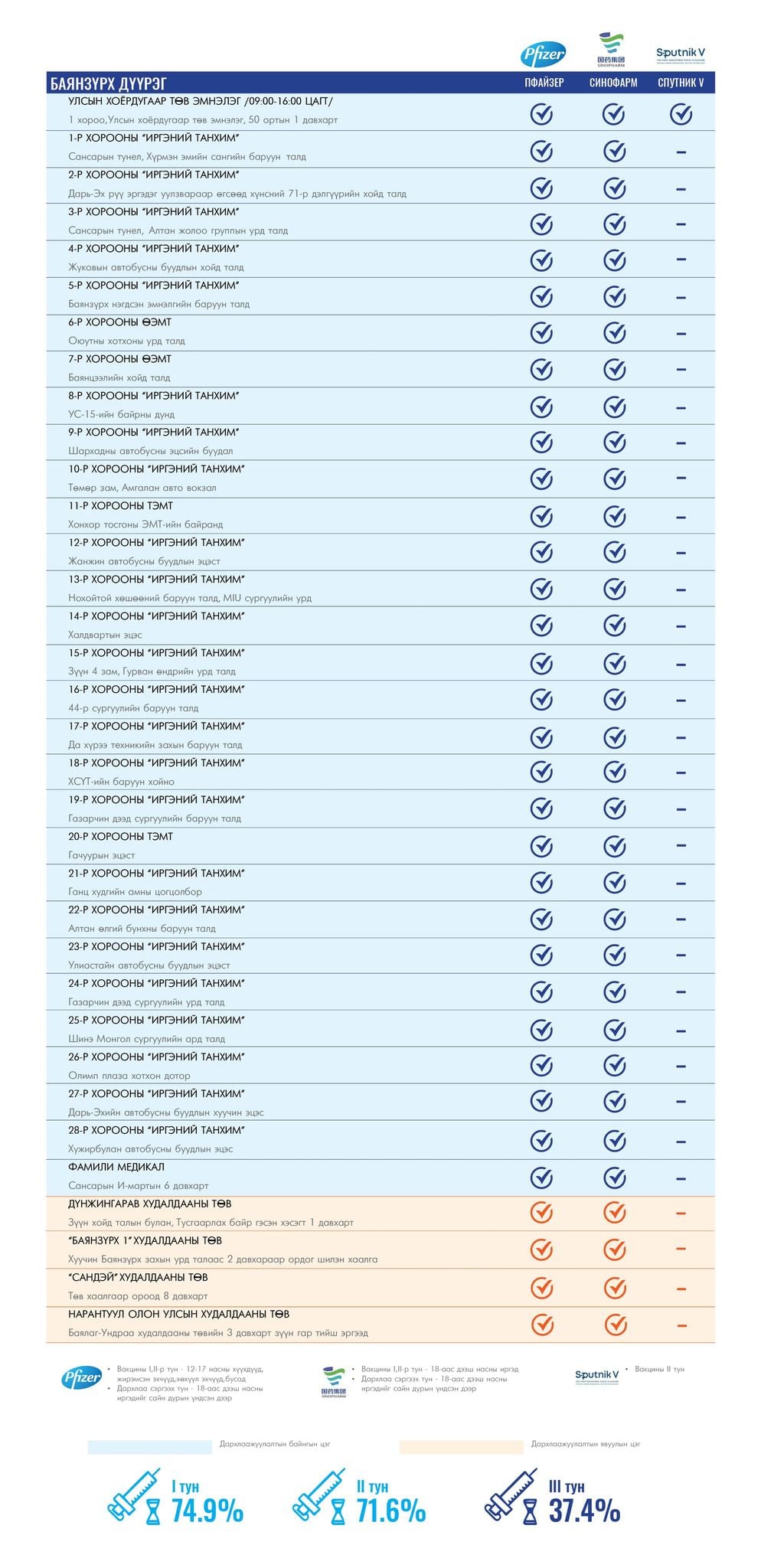 Мөн томоохон зах, худалдааны төвд 13 түр цэг, их , дээд сургуулиудад 17 явуулын баг ажиллаж байна.