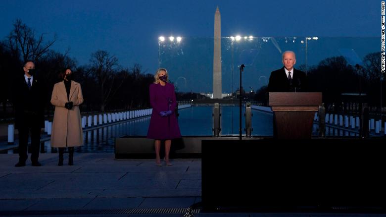 Жо Байден Ерөнхийлөгчийн суудлаа авснаас хойш сарын хугацаанд коронавирусийн эсрэг хариу арга хэмжээ авахыг эрмэлзсэн тухайгаа дурдсан бөгөөд коронавирусийн улмаас амиа алдсан хүмүүст хүндэтгэл үзүүлэх, гэр бүлийнхэнд нь эмгэнэл илэрхийлж, дурсах цаг гаргаж буй аж. Жо Байден Ерөнхийлөгч болохоос нэг хоногийн өмнө буюу нэгдүгээр сарын 19-ний өдөр коронавирусээс нас барагсдын тоо 400 мянгад хүрэхэд тэрбээр хүндэтгэл үзүүлж байсан билээ. "Бид эдгэхийн тулд санаж байх ёстой. Бид олон сарын турш шаналж байлаа. Харин өнөө орой бид хамтдаа гашуудаж, хамтдаа эдгэх болно" хэмээн хэлж байсан юм.