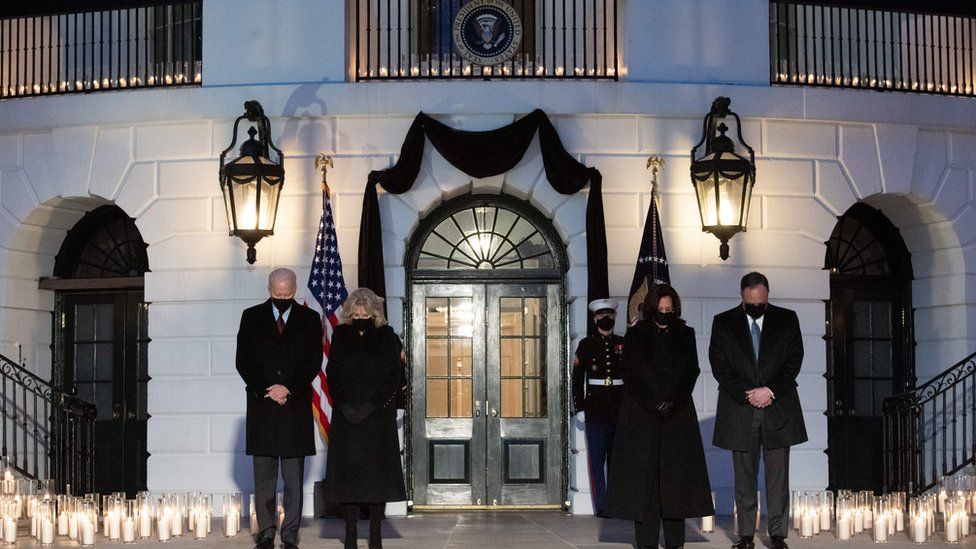 АНУ-ын Ерөнхийлөгч Жо Байден коронавирусийн улмаас нас барсан 500 мянган хүнд хүндэтгэл үзүүлж, зул асаалаа. Энэ үеэр Ерөнхийлөгч Жо Байден “Бид үндэстний хувьд ийм харгис хувь заяаг хүлээн зөвшөөрөх учиргүй. Бид уй гашууд автаж болохгүй” хэмээжээ. Ерөнхийлөгч, тэргүүн хатагтай, дэд Ерөнхийлөгч нар Цагаан ордны гадаа лаа асааж, хэсэг чимээгүй байж эмгэнэл илэрхийлэв.