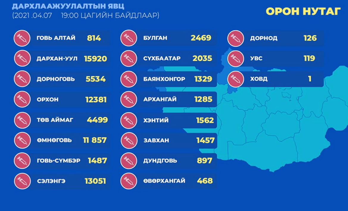 | Орон нутагт коронавирусийн эсрэг вакцинжуулалт идэвхтэй үргэлжилж байна |