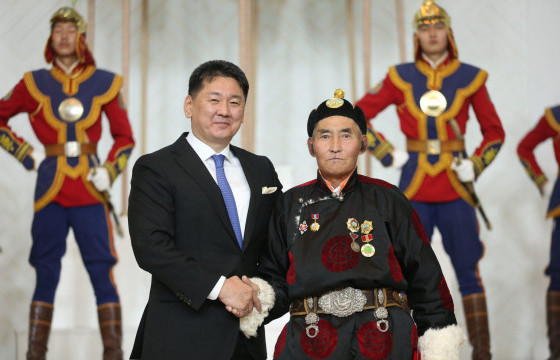 XVII жарны "Сайжржуулагч" хэмээх усан бар жилийн босгон дээр төр түмэндээ үнсүүлж Соёлын гавьяат зүтгэлтэн цол тэмдгээр энгэрээ мя ...