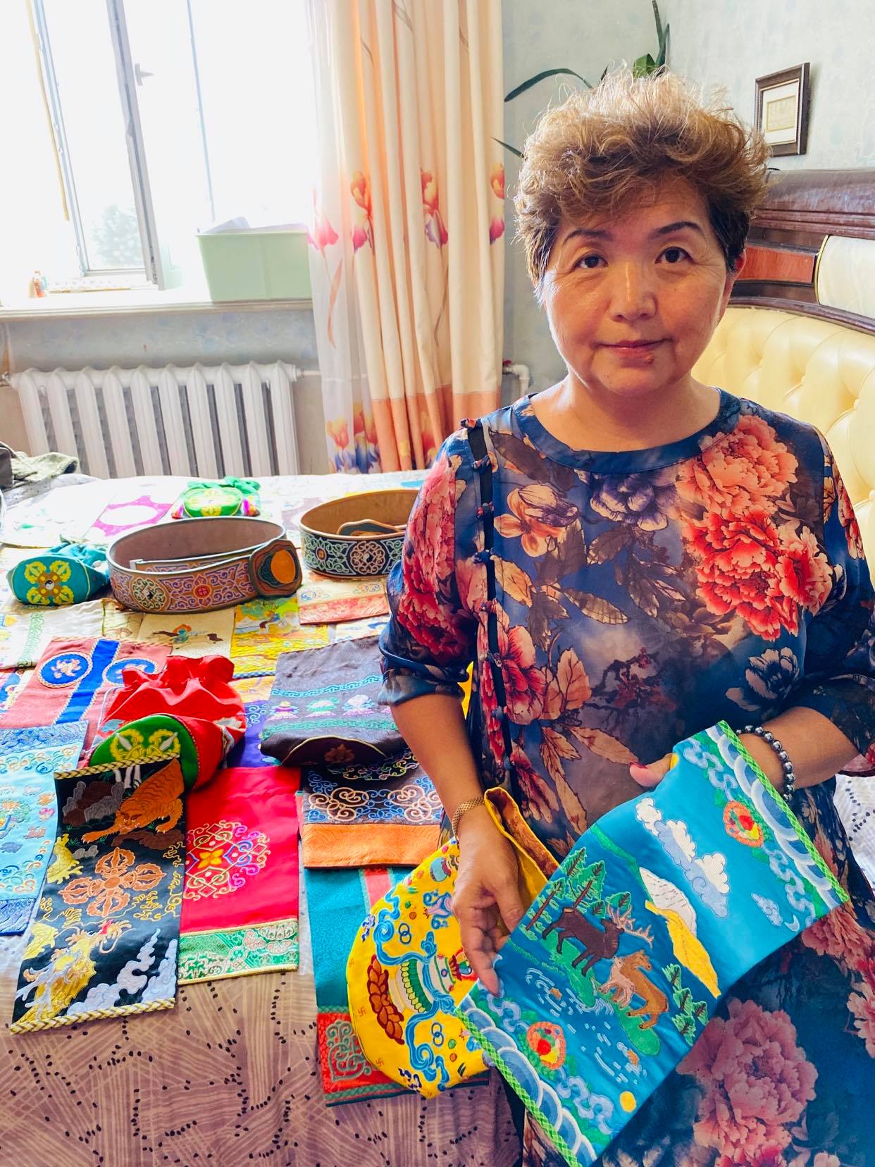-Би 32 жил банканд ажилласан. Ажлынхаа хажуугаар өөрийн сонирхлоороо үндэсний өв соёл болсон бүхий л төрлийн хатгамал оёдог байсан. Тэтгэвэрт гарснаас хойш зүү ороох, загасан нуруу хатгах оёдлоор дагнан эмэгтэйчүүд, хүүхэд залуучуудад заагаад зургаан жил болж байна.