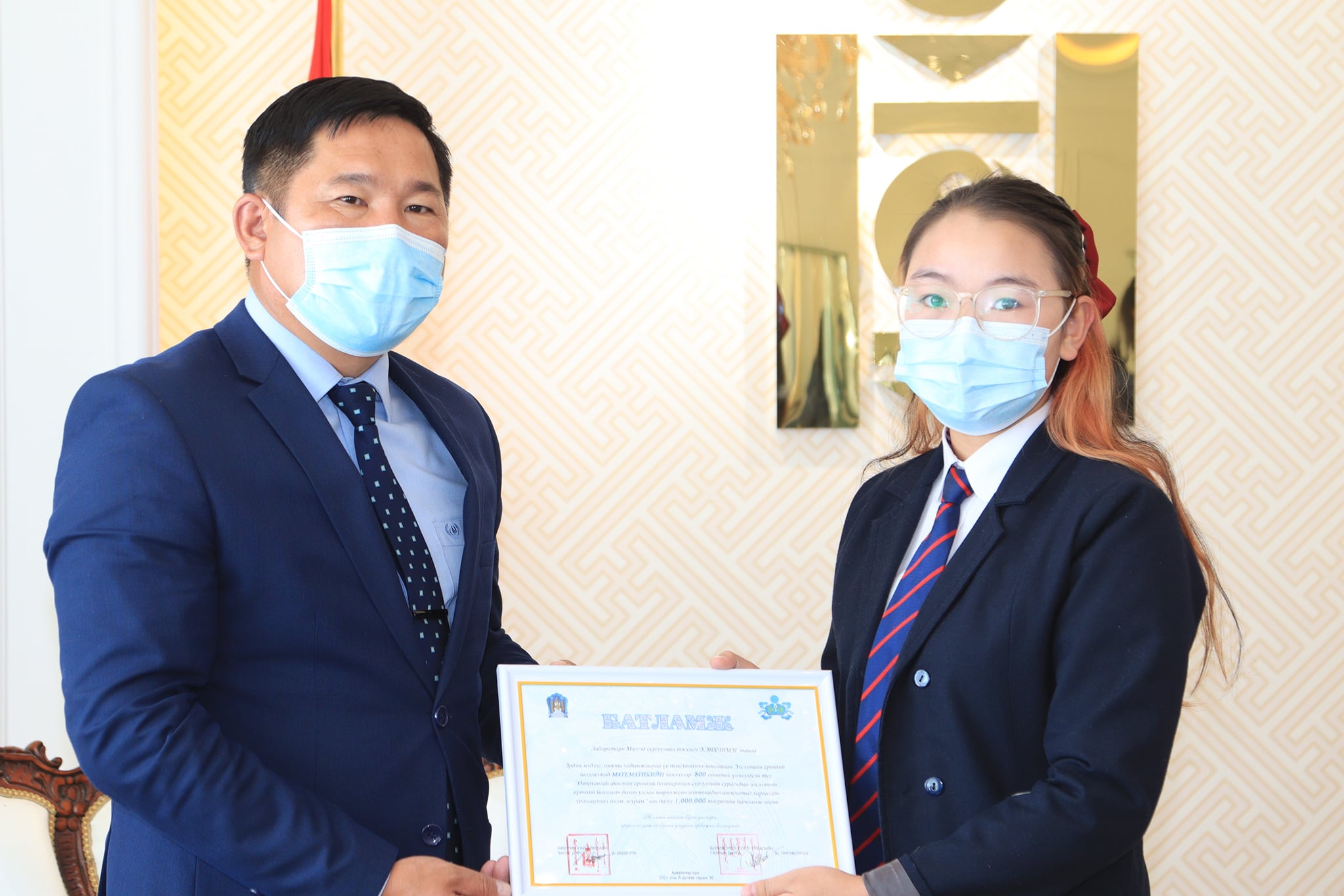 Элсэлтийн ерөнхий шалгалтад математик, гадаад хэлээр хамгийн өндөх оноо авсан 504 хүүхдийг нэгдүгээр курст нь олон улсын хэлний бэлтгэл хөтөлбөрөөр сургаад, ирэх жил хэлний бэлтгэлдээ тэнцсэн 50 хүүхдийг дэлхийн шилдэг их, дээд сургуульд харин үлдсэн 450 сурагчийг гадаадын сургуульд сургах тэтгэлэг олгохоор болсон. Тэдний нэг болох Өвөрхангай аймгийн Мэргэд лаборатори сургуулийн 12Б ангийн сурагч Э.Энхчимэгтэй баярын сэтгэгдлийг нь хуваалцсан юм. Тэрбээр математикийн шалгалтаа 100 хувийн гүйцэтгэлтэй биелүүлж, 800 оноо авч, аймгийнхаа сурагчдийг тэргүүлсэн билээ.