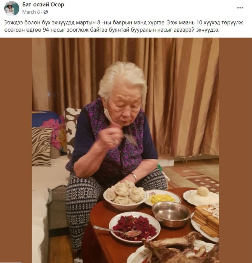 Би ч залуудаа олон хүүхэдтэй яах билээ гэж тэвдээгүй. Манай өвгөн “Залуу насанд хүүхэн харж явдаг байсан бол дунд насанд чавганц харж явдаг боллоо” гэж байсан юм. Тэр нь юу гэсэн үг вэ гэхээр нэг чавганц явж байвал "Энэ чавганц хүүхэд хараад өгөх боломжтой болов уу, үгүй болов уу" гэж хардаг байсан гэсэн үг шүү дээ.