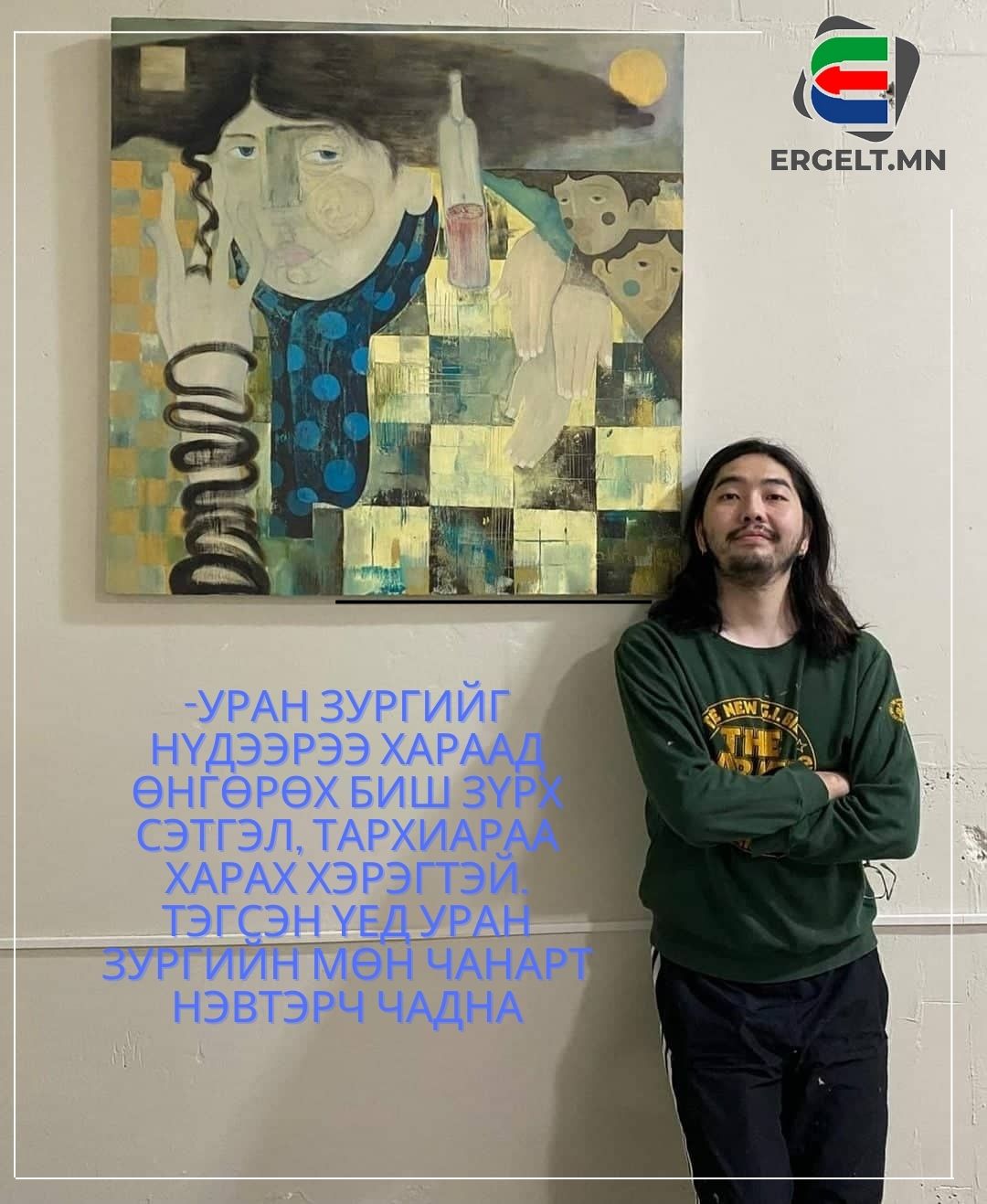 -Сайн байна уу. Анхны үзэсгэлэнгээ гаргахын тулд таван жилийн хугацаанд бэлдсэн. Таван жилийн хугацаанд юуг сурч, яаж хөгжсөнөө уран бүтээлүүдээрээ дамжуулан харуулсан. Үзэсгэлэнгээ гаргах мөч үгээр илэрхийлэмгүй гайхалтай. Өөрийн харж буй өнцөг, хэлэхийг хүссэн санаагаа  зургаар илэрхийлснээ бусадтай хуваалцсанаар дотор онгойх шиг болсон. Үзэсгэлэнгээ гаргаад дууссаны дараа маш их тайвширсан.