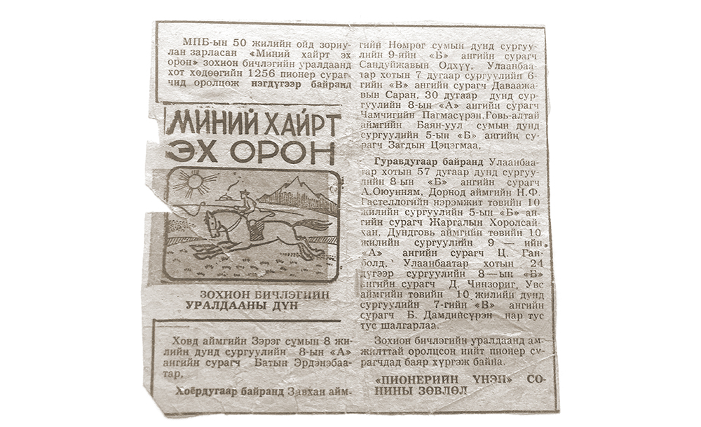 -Би таван настайдаа ааваасаа өнчирч, амьдрал үзсэн.  Тухайн үедээ хонь хариулахаас өөрийг мэддэггүй хөдөөний хүүхдүүдийн адил өссөн. Ээж минь намайг сургуульд явуулах их дургүй байдаг байж билээ. Гэсэн ч би сэтгүүлч болох хүсэлдээ хөтлөгдөн сурахаар шийдэж, өөрийгөө зоригжуулсан нь болсон.