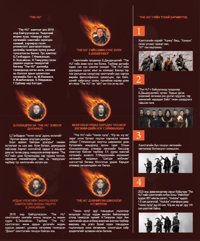Монгол хамтлаг, дуучин гаднын зах зээлд топ од болон гарна гэдэг бидний хувьд холын мөрөөдөл байлаа. Харин тэр үндэстний мөрөөдлийг “Чонон сүлд”, “Юу вэ, юу вэ” дуугаараа шуугиулж асан хүннү рок “The HU” хамтлаг биелүүлж, өдгөө монголчуудынхаа хайр, хүндэтгэлийг хүлээхээс гадна дэлхийн урлаг судлаач, экспертүүд, хөгжимд шимтэгчдийн дурлан сонсдог амьд хөгжмийн хамтлаг болжээ. Үндэсний уламжлал, ардын хөгжмөө орчин үеийн цахилгаан хөгжимтэй хослуулж, хүний оршихуй, байгаль эх, нэгнээ хайрлах сэтгэл, мөн чанарын тухай уран бүтээлүүд туурвидаг “The HU” хамтлаг Монгол Улсын төрийн дээд “Чингис хаан” одонгоор шагнуулж, ЮНЕСКО-гийн “Энх тайвны төлөөх уран бүтээлч”-ээр тодроод буй билээ.