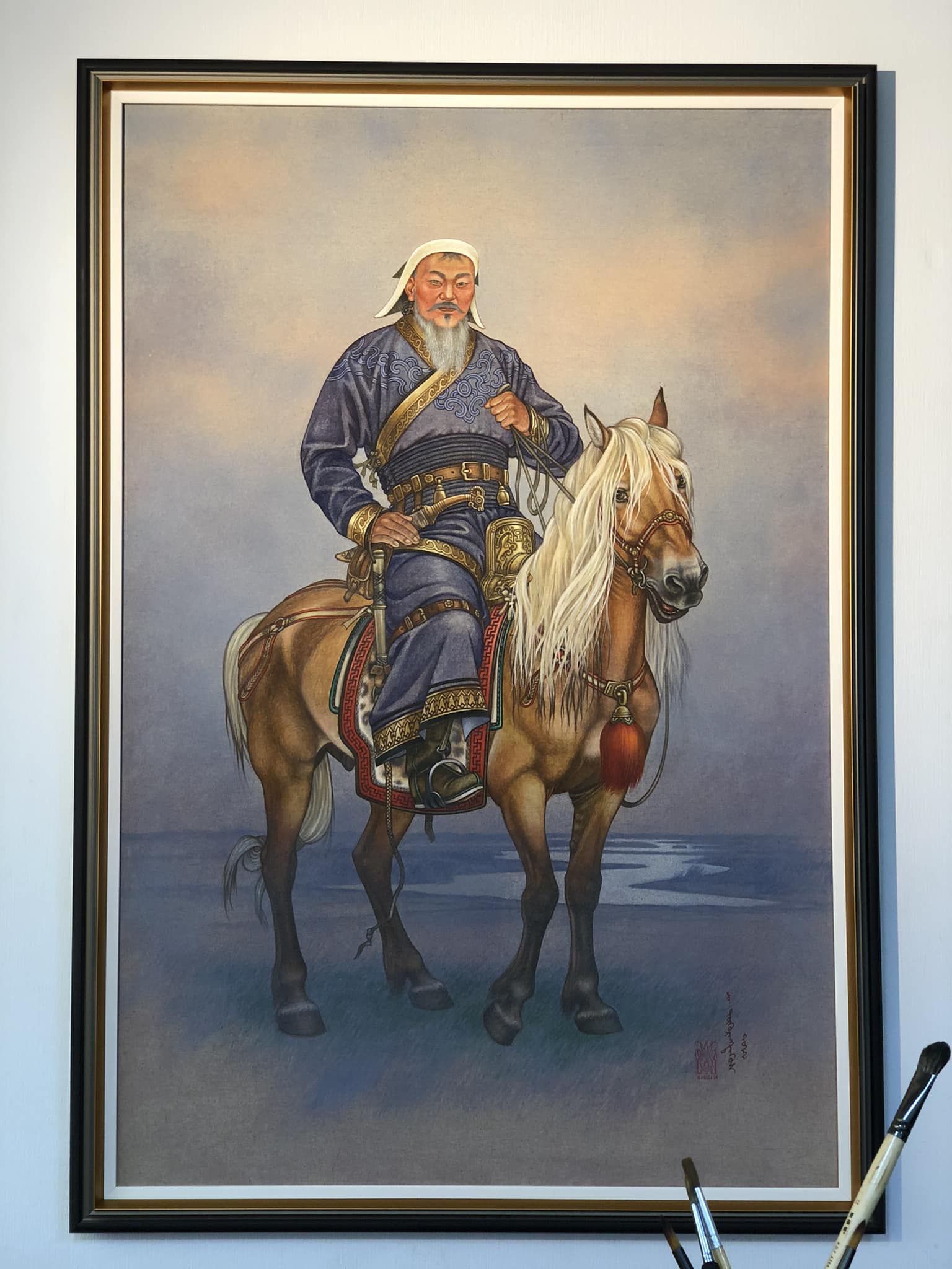 Ах эртний баатруудын хуяг дуулга, хувцас эдлэл хэрэглэл бүгдийг нь судалж, зав гарсан үедээ хүмүүстэй мэтгэлцдэг байв. Нутагтаа очихоороо ахмадуудтай их уулзаж, ярилцана. Уулзсан хүмүүстэйгээ зургаа авахуулж, тэмдэглэл хөтөлдөг байсан.Онцлоход анх удаа Чингис хааны хөргийг морьтойгоор дүрслэн буулгасан хүн нь бас л ах юм шүү дээ. Чингис хааныг урьд нь өөрөө зурж байсан ч энэ удаагийнх нь илүү бүтээлч болсон. Чингис хааны хөргийг буулгасан олон зураг байдаг ч яг бүтэн зурсан нь ховор. Мөн морьтой зурсан Монголын анхны бүтээл болсон.