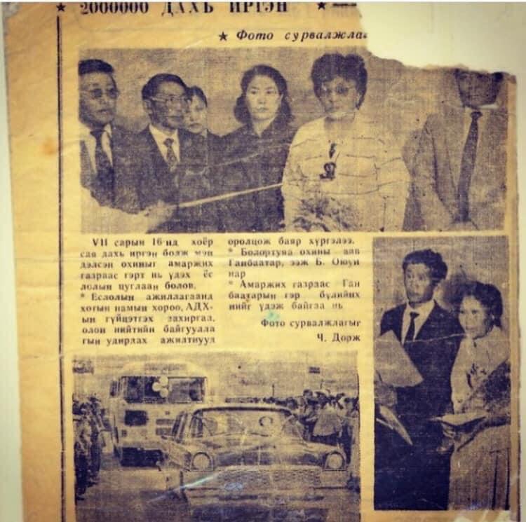 -Тухайн цагт төрсөн 25 хүүхдэд хотын намын хороо, АДХ-ын гүйцэтгэх захиргаа, ХЗЭ-ийн хороо, эмэгтэйчүүдийн холбоо, эцэг, эхийн ажлын газрын удирдлага, хамт олон нь амьд цэцгийн баглаа гардуулж, баяр хүргэж, хоёр сая дахь иргэнийг бэлэгдсэн дурсгалын тэмдэг, гурван өрөө байр өгч байсан гэдэг. Манайх улсаас өгсөн байранд олон жил амьдарч байсан.