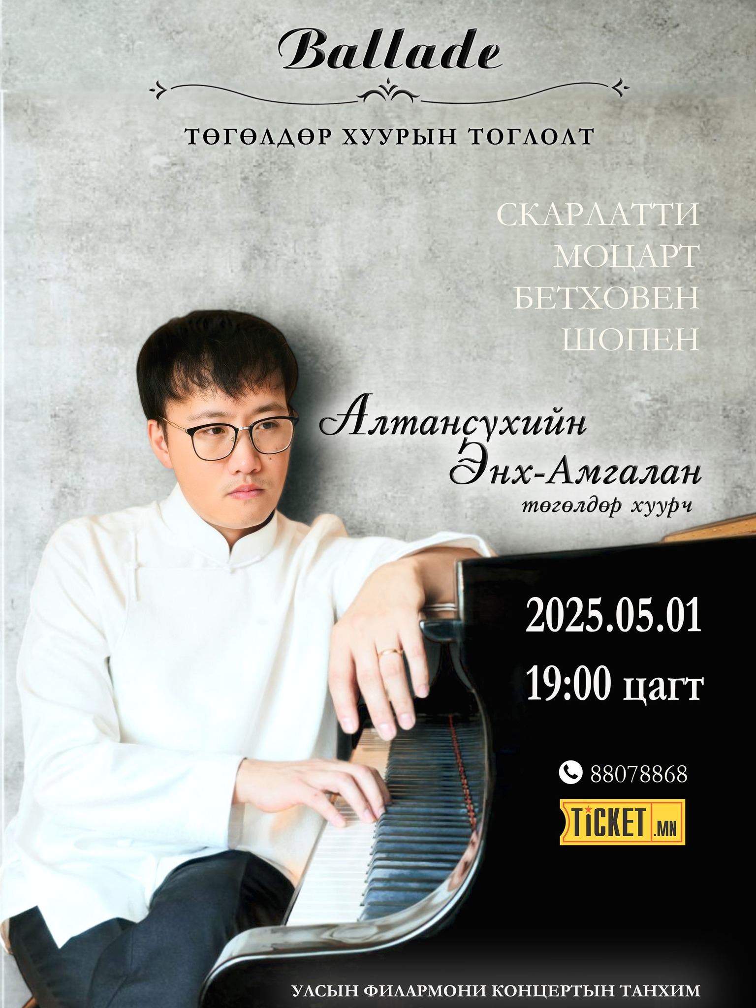 -Миний тоглолтын онцлог нь Ф.Шопений I, II, III, IV балладуудыг тоглох юм шүү дээ. Нэг дор дөрвүүлэнг нь тоглодог төгөлдөр хуурч цөөн байдаг. Тоглолтынхоо нэрийг "Баллад" гэж өгсөн нь ийм учиртай.