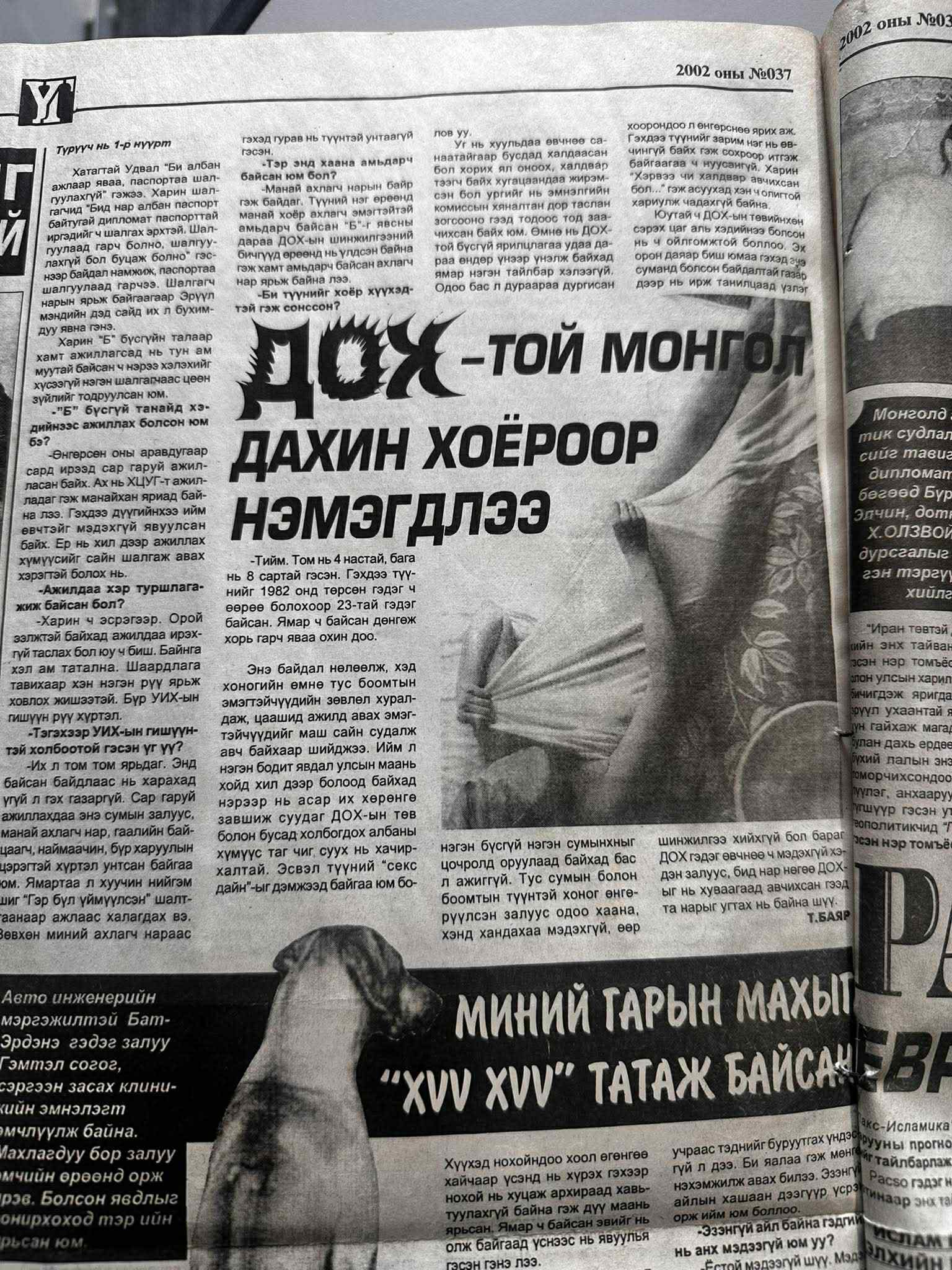 -Ямар ч баримт байгаагүй. Үнэндээ ажилдаа хайнга хандаж, редакцад ирсэн худал мэдээллийн үнэн зөвийг ололгүйгээр, эх сурвалжуудаас асууж, тодруулалгүй шууд нийтэлсэн байсан. Ийм хариуцлагагүй үйлдлээс нь болж хайран сайхан эмэгтэй амиа алдсан даа. Тэр Дарханы цэргийн ангид ажилладаг царайлаг, миссийн тэмцээн, уралдаанд оролцож явсан гоо үзэсгэлэнтэй бүсгүй байсан. Бодит байдал дээрээ цэргийн ангийн дарга нь түүнд ажлын байрны бэлгийн дарамт үзүүлэхийг удаа дараа оролдож, эрхшээлдээ оруулахыг санаархахад нь талийгаач зөвшөөрөөгүй юм билээ. Хайртай нөхөртэй, хоёр нялх хүүхэдтэй, ёс журамтай эмэгтэй юү гэж тийм зүй бус саналыг хүлээж авах юм бэ. Үүнээс болж ер нь бүх хэрэг мандсан байдаг. Санасандаа хүрч чадаагүй дарга нь өс санаж бүсгүйг хорлохыг олон удаа оролдож байсан юм билээ. Түүний нэг нь талийгаач эмэгтэйг “ДОХ-той, эрчүүдийг цагаан бээлий шигээ сольж, өвчнөө бусдад тараадаг” гэх мэт худал захидал бичээд “Үг” сонины редакц руу явуулсан явдал. Гол нь “Үг” сонины эрхлэгч Б.Ханддолгор захидлын үнэн эсэхийг магадлахгүйгээр 2002 оны гуравдугаар сарын 5-ны дугаартаа “ДОХ”-той монгол дахин хоёроор нэмэгдлээ” гарчигтайгаар захидлыг тэр чигт нь шахуу нийтэлсэн байдаг. “Баримтаа нягтлахгүй яасан юм бэ, хэний захидал учраас ийн шууд нийтэлсэн хэрэг вэ” гэхэд сэтгүүлч Б.Ханддолгор “Эх сурвалжаа хамгаална” гээд захидлын эзний нэрийг бидэнд хэлээгүй ч захидлаас нь тэр эрэгтэй бичсэн нь тодорхой харагддаг.
