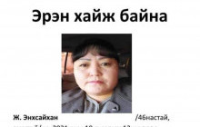 46 настай Ж.Энхсайхан гэх эмэгтэй аравдугаар сарын 13-нд гэр рүүгээ явахаар гараад сураггүй алга болжээ. Тэрбээр алга болоод 37 хонож байгаа бөгөөд энэ хугацаанд сураг нь гараагүй байна. Бид энэ талаар түүний хүү Э.Энхбаатартай холбогдож, т ...