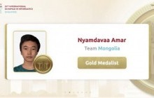 Сингапур Улсад энэ сарын 13-23ны хооронд цахимаар зохион байгуулагдсан мэдээлэл зүйн Олон Улсын 32 дугаар олимпиадад Монгол Улсаа төлөөлөн оролцсон А.Нямдаваа амжилттай оролцож, алтан медаль хүртжээ. Тус олимпиадаас Монгол Улс анхны алтан м ...